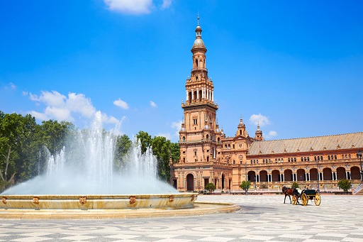 Es la plaza sevillana más famosa, y en ella se encuentran los nombres de todas las provincias de España. Fue proyecta para la Exposición Iberoamericana de 1929 por el arquitecto Aníbal González, y actualmente mantiene toda la galantería y el halo romántico, que han hecho de ella un espacio absolutamente único. En ella se puede disfrutar de un paseo en barca o puestos de barquillos ideales.